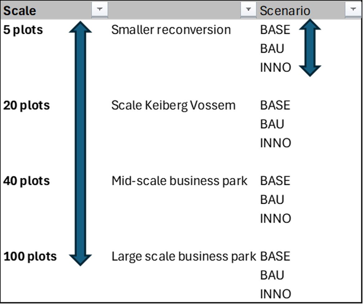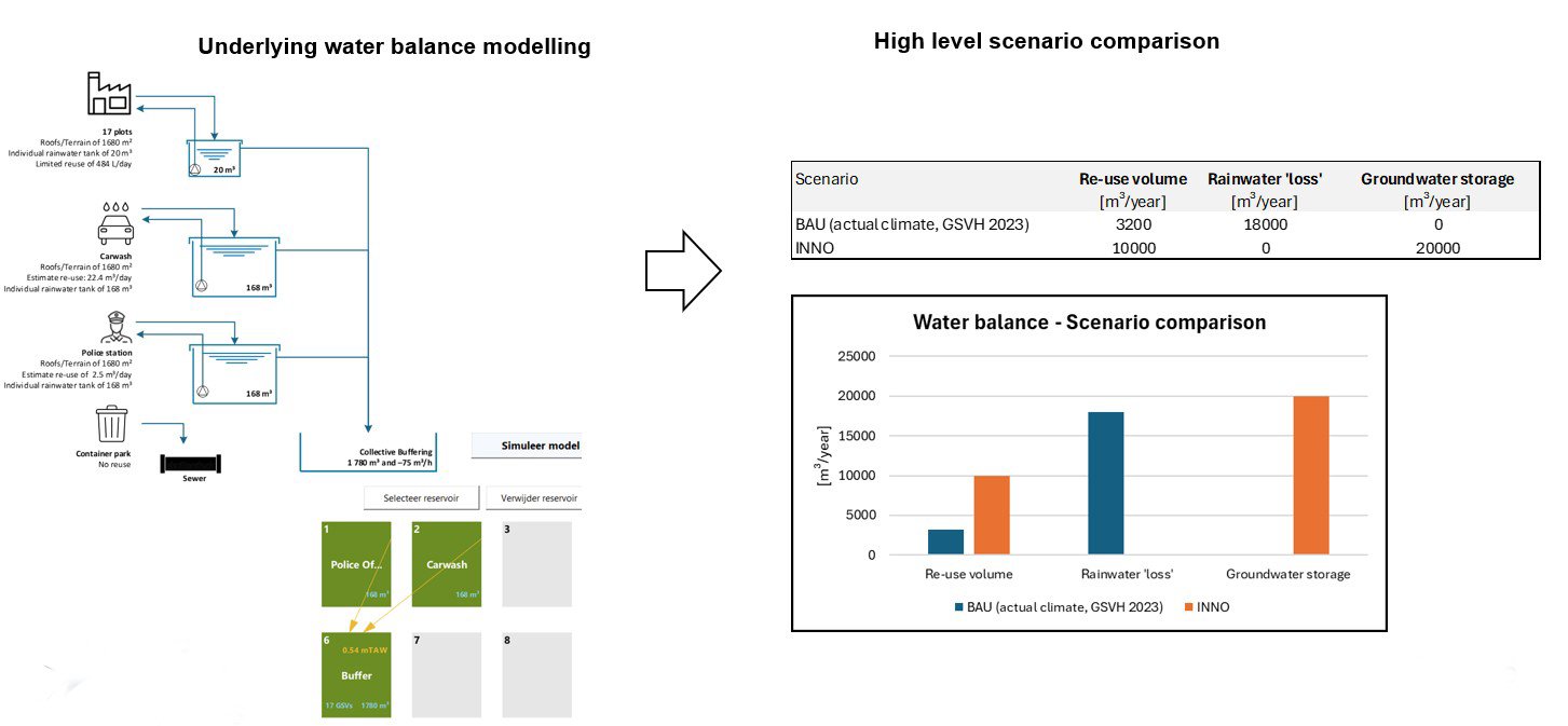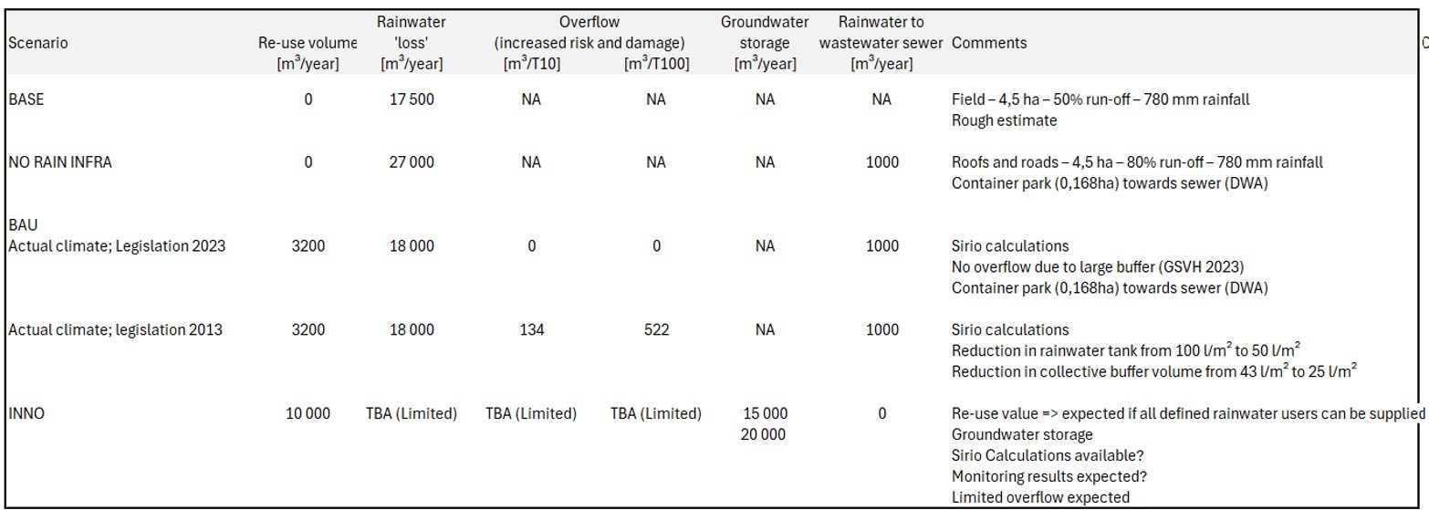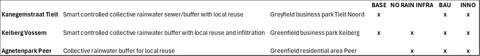 - BAU: greenfield business park with individual rainwater buffers for reuse and collective buffer for peak shaving, according to Flemish legislation